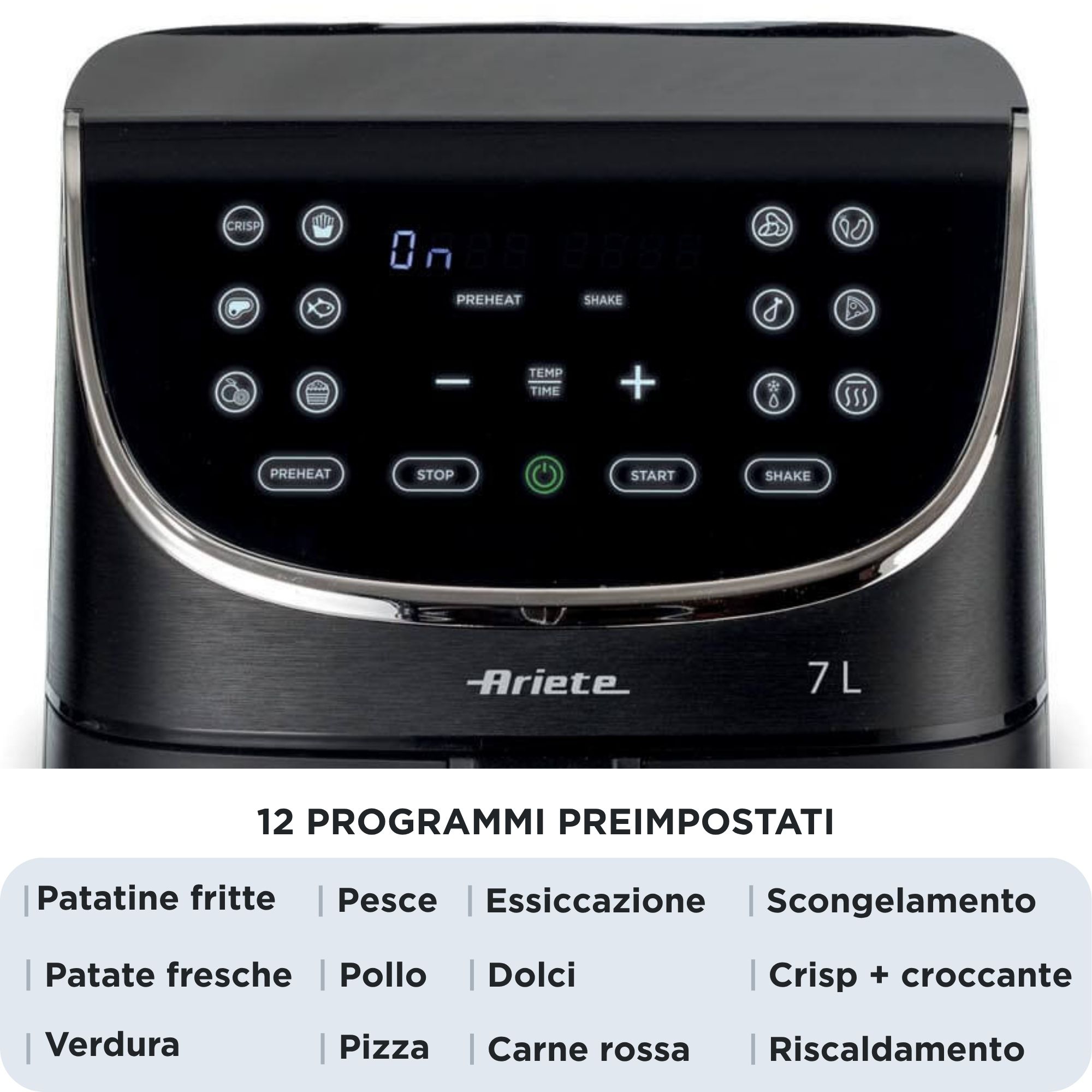 Per grandi quantità di fritto e tanta croccantezza. Adatta a fritture di pesce, carne, crocchette, patatine e alimenti impanati. 12 programmi preimpostati ideali per cene in famiglia e con amici.