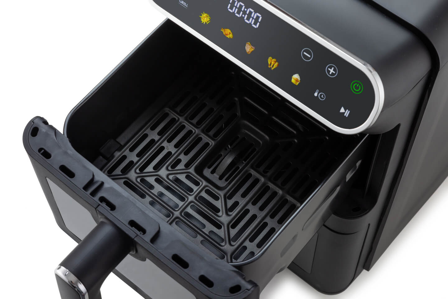 Quante volte le patatine sono pronte ma l'hamburger è ancora crudo? La funzione SYNC sincronizza la fine del tempo di cottura. Anche se i due cestelli hanno tempi e temperature diverse, la friggitrice farà in modo che tutto sia pronto nello stesso istante. Niente più cibo freddo in tavola!