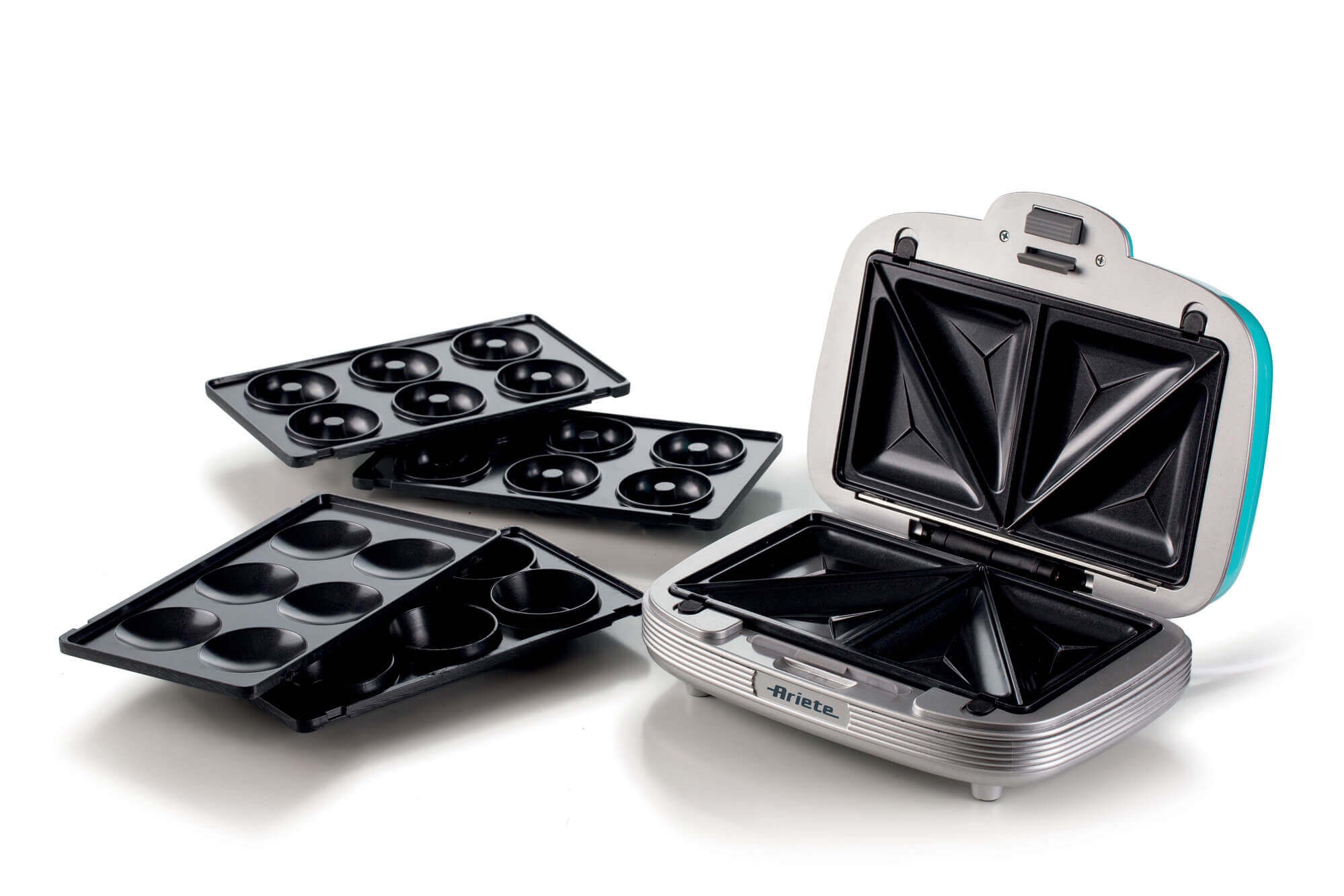 Piastra Elettrica Multifunzione per muffin, donuts e sandwiches, con design unico degli American Diner anni ‘50. Ideale per preparare merende dolci e salate con allegria. Let’s party con Party Time Ariete!