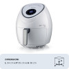 Friggitrice ad aria da 7 litri. Cuoce ad aria calda, frigge senza odori, con un solo cucchiaio di olio fino a 2,5 kg di patatine fritte in una sola volta. Temperatura regolabile max 200°. Bianco. BPA Free