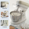 Planetaria con tazza da 5,5 litri in acciaio inox. Gancio impasti duri, frusta impasti morbidi, frusta per montare. 7 velocità per impastare, montare e amalgamare tutti gli ingredienti. Beige